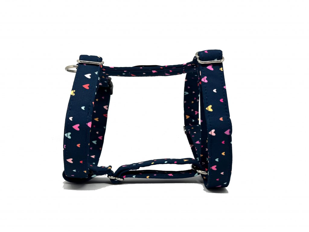 Originální barevný postroj je vhodný pro všechna psí plemena. Je vyroben z pevného nylonového popruhu obšitého speciální látkou s membránou, která odpuzuje vodu a nečistoty.