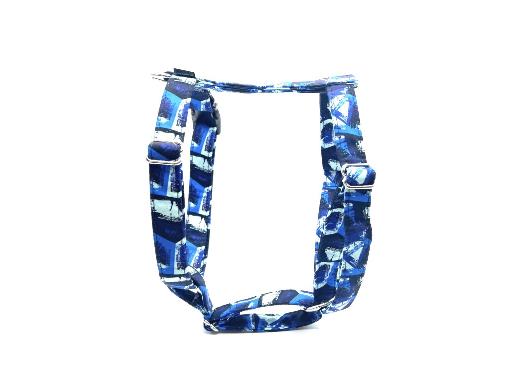 Originální barevný postroj je vhodný pro všechna psí plemena. Je vyroben z pevného nylonového popruhu obšitého speciální látkou s membránou, která odpuzuje vodu a nečistoty.