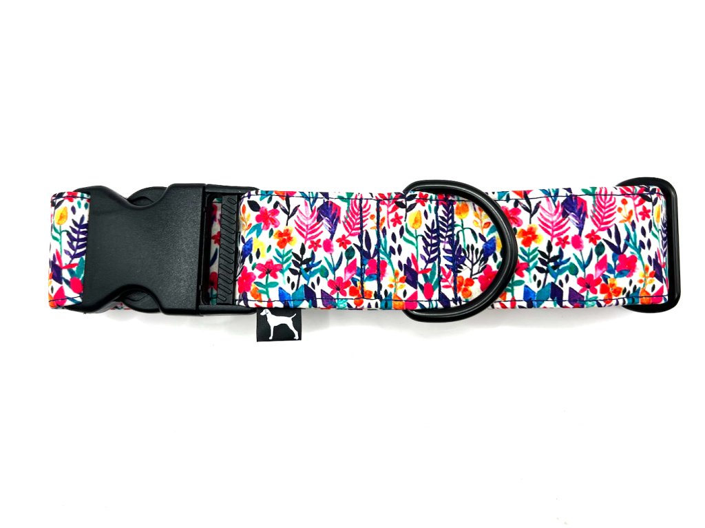 Obojek s motivem barevných kvítků je hodně oblíbeným vzorem psích slečen.