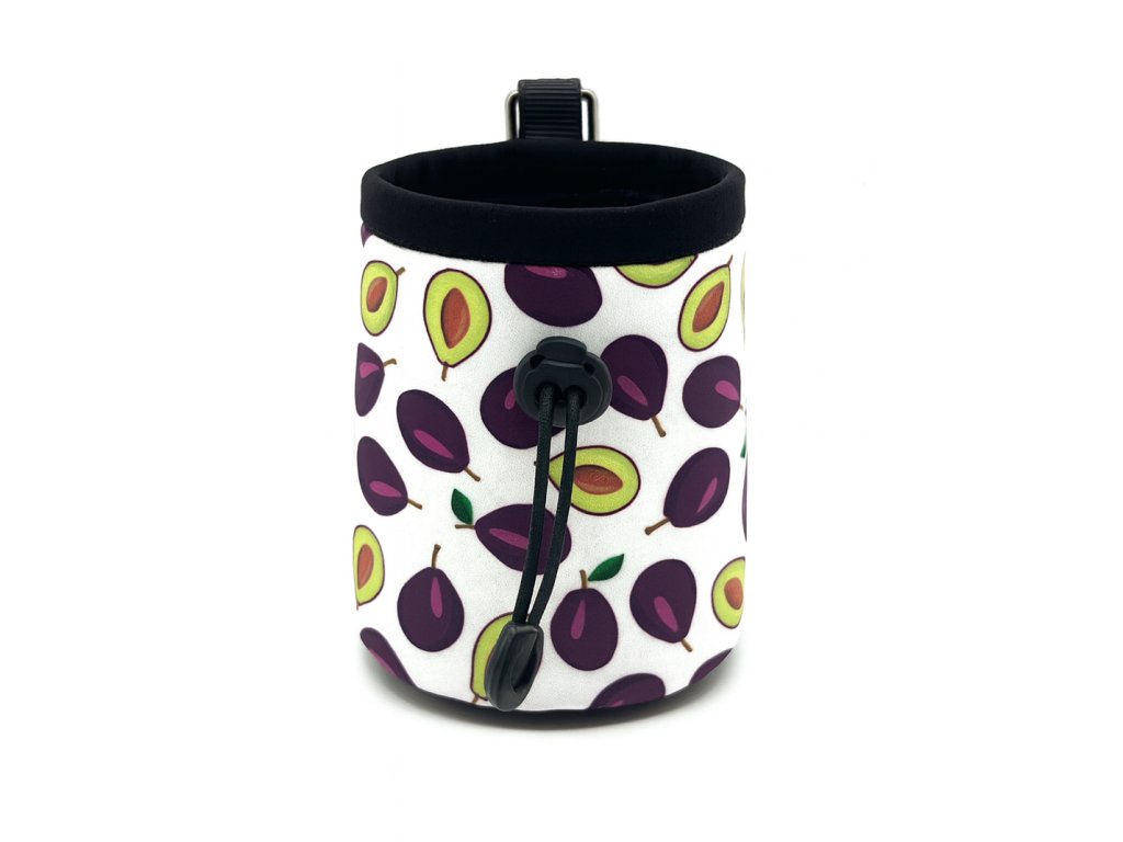 Originální barevný pamlskovník na psí pamlsky se vzorem švestek na bílém pozadí. Pamlskovník je vyroben z voděodolného materiálu a je vybaven odolnou podšívkou a karabinkou na připnutí. Chytrý zavírací systém oceníte při častém otevírání a zavírání pamlskovníku.