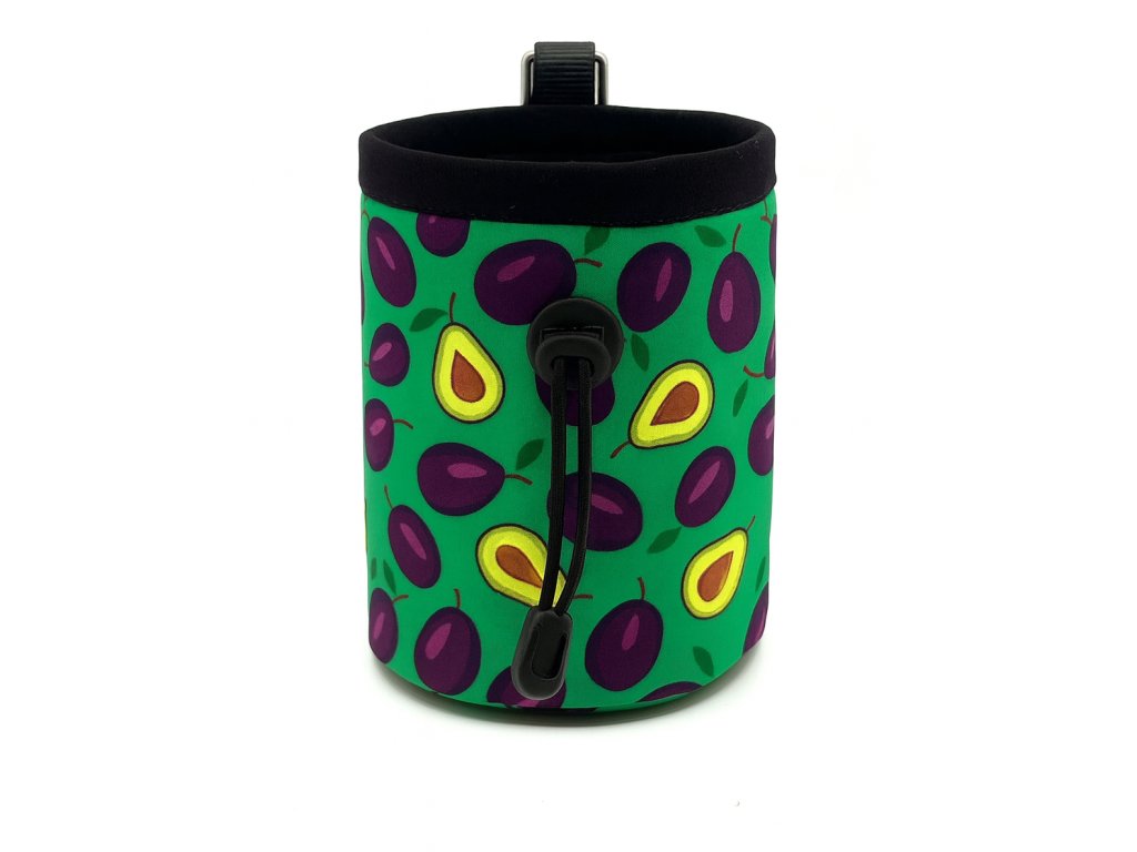Originální barevný pamlskovník na psí pamlsky se vzorem švestek na zeleném pozadí. Pamlskovník je vyroben z voděodolného materiálu a je vybaven odolnou podšívkou a karabinkou na připnutí. Chytrý zavírací systém oceníte při častém otevírání a zavírání pamlskovníku.