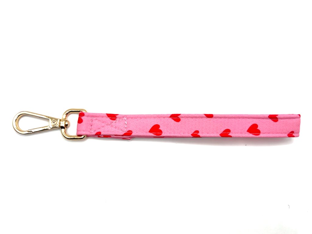 Klíčenka s oblíbeným motivem HEART na růžovém podkladu s červenými srdíčky.