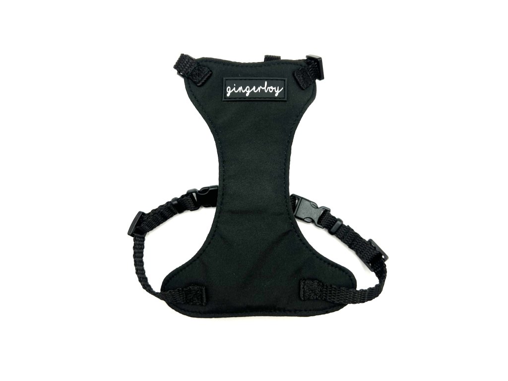 Postroj pro kočky s černou náprsenkou a PP popruhu šířky 1 cm.