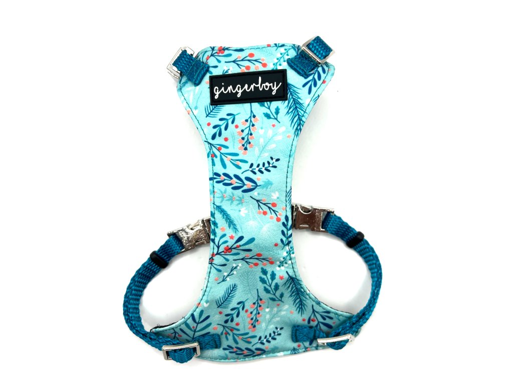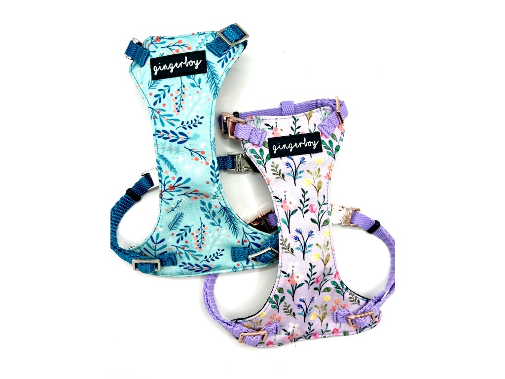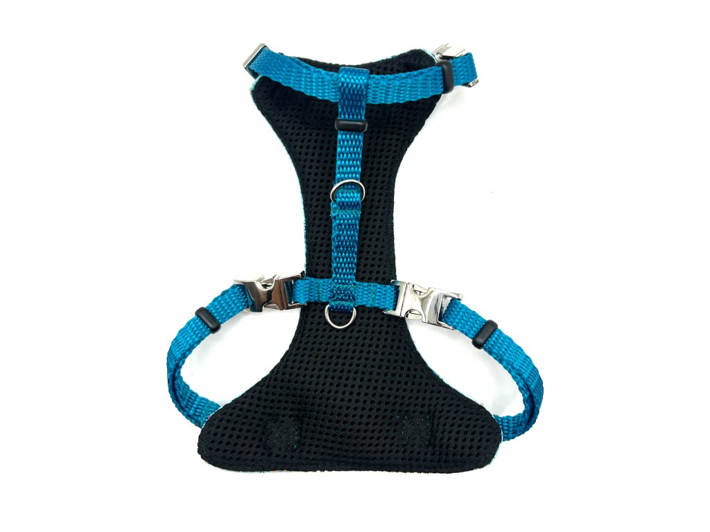 Postroj je rozepínací jak u krku, tak i kolem trupu a má dvě kovová "D" na uchycení vodítka - uprostřed a na konci.