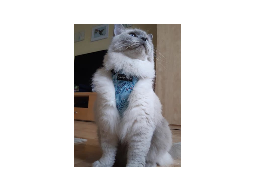 Postroj je povolovací jak kolem krku, tak i kolem trupu, ale je potřeba kočičku přeměřit a napsat nám její míry a i váhu - podle toho ušijeme délku náprsenky.
