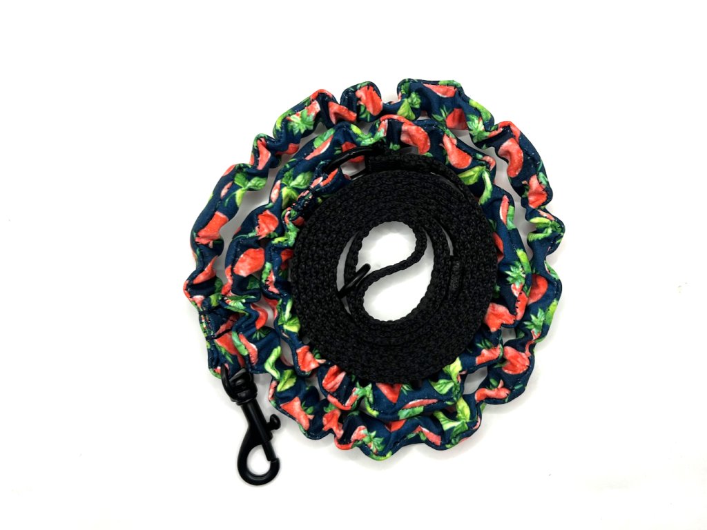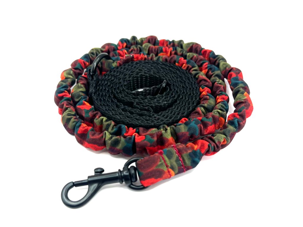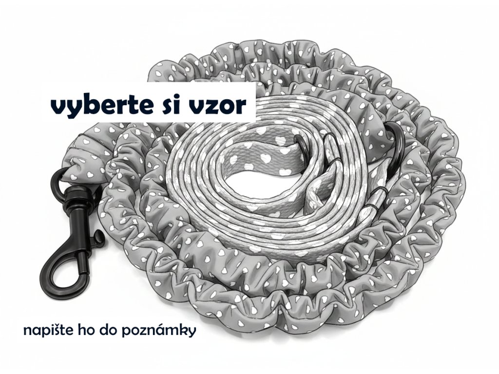 Vodítko pro kočky z PP popruhu šířky 1 cm. Vodítko má amortizační část s gumou, která tlumí tah - LÁTKA DLE VLASTNÍHO VÝBĚRU - JE MOŽNÉ VYBRAT VŠECHNY LÁTKY, KTERÉ MÁME U PSÍCH OBOJKŮ. Vodítko má na konci lehkou karabinku - můžete si zvolit barvu karabinky.