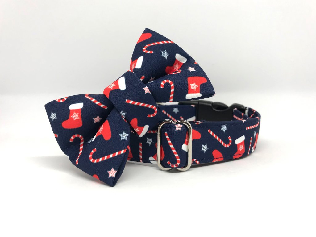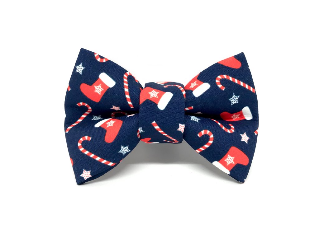 Veselý motýlek pro pejska s jedinečným vánočním vzorem. Motýlek je vyrobený ze speciální látky, která odpuzuje vodu a nečistoty. Je vybaven suchým zipem, aby se dal lehce připnout na stávající obojek vašeho pejska.