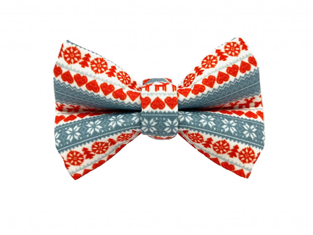 Veselý motýlek pro pejska s jedinečným vzorem Vánoc. Motýlek je vyrobený ze speciální látky, která odpuzuje vodu a nečistoty. Je vybaven suchým zipem, aby se dal lehce připnout na stávající obojek vašeho pejska.