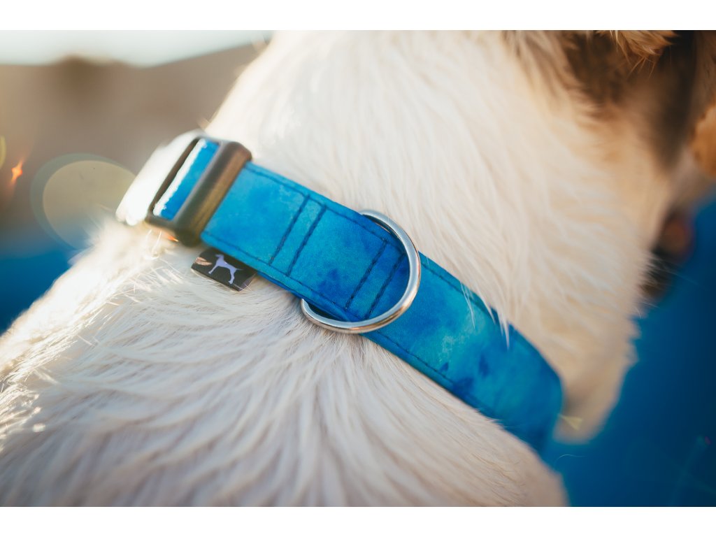 Obojek s motivem akvarelu na modrém podkladu je vhodný pro všechna psí plemena. Je vyroben ze speciální látky s membránou, která odpuzuje vodu a nečistoty. Tento originální obojek ocení majitelé, kteří nechtějí splývat s davem.